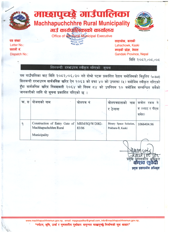 शिलबन्दी दरभाउपत्र स्वीकृत गरिएको सूचना ।