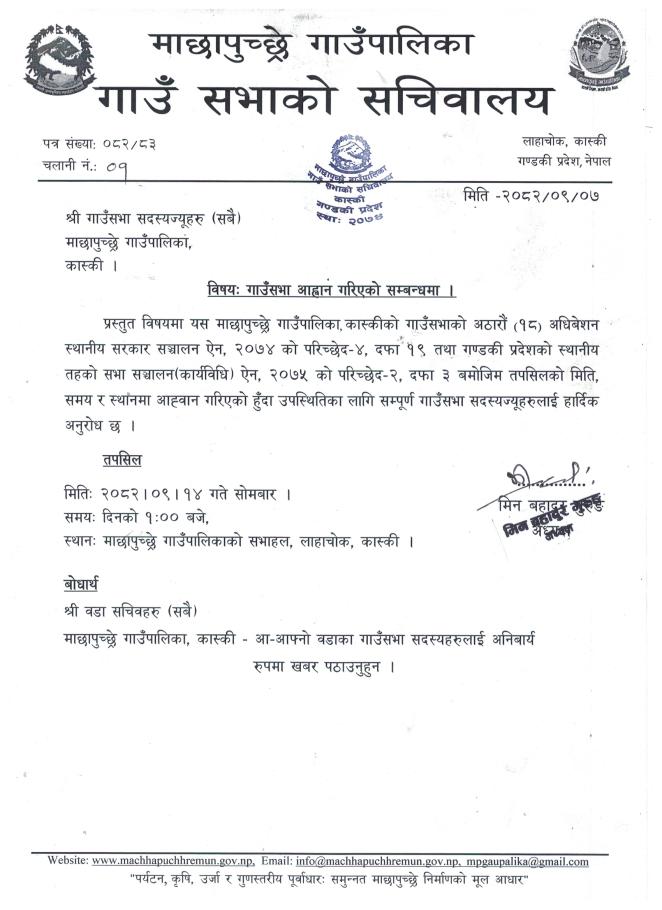 १८ ‌औ गाउँसभा सम्बन्धमा ।।