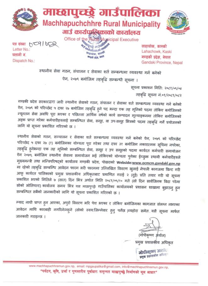 आ व २०८१।०८२ को लागि निर्धारण गरिएको माछापुच्छ्रे गाउँपालिकाको दररेट