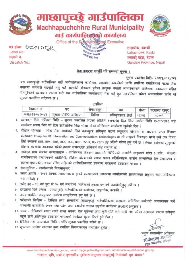 सूचना प्रविधि अधिकृतको दरखास्त आह्वान सम्बन्धमा ।।