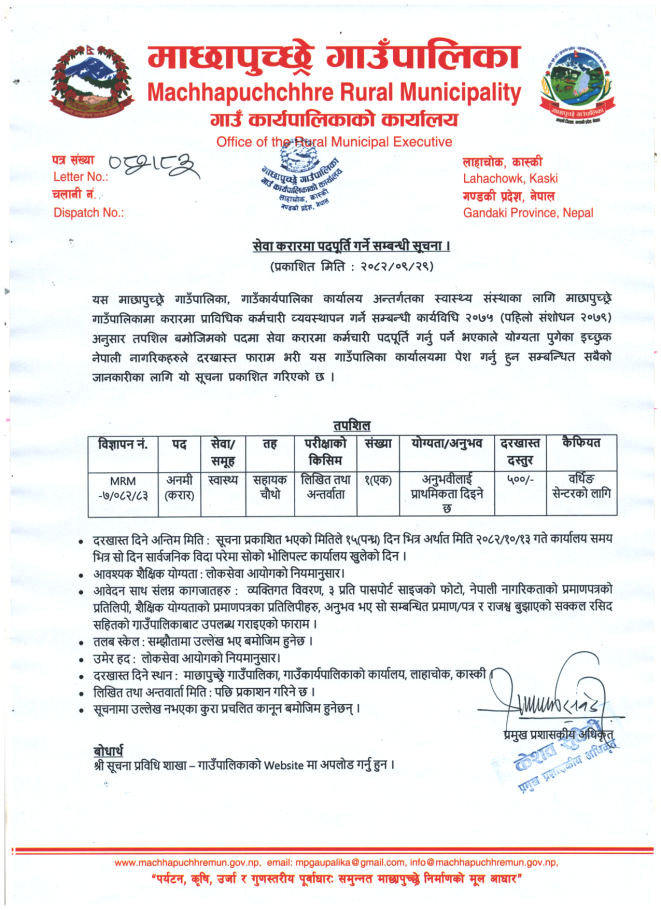 » सेवा करारमा पदपूर्ति गर्ने सम्बन्धी सूचना (सहायक चौथो अनमी)।