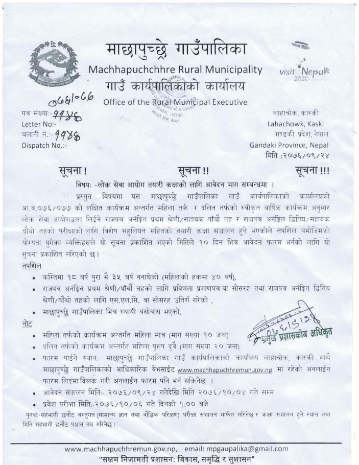 » लोक सेवा आयोग तयारी कक्षाको लागि आवेदन माग सम्बन्धी सूचना।