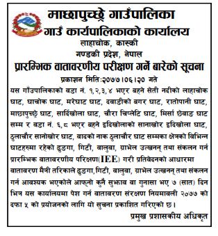 प्रारम्भिक वातावरणीय परीक्षण गर्ने बारेको सूचना।