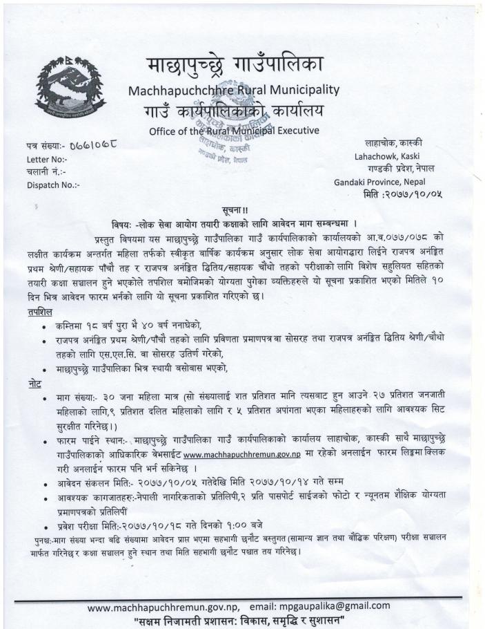 लोक सेवा आयोग तयारी कक्षाको लागि आवेदन माग सम्बन्धी सूचना।