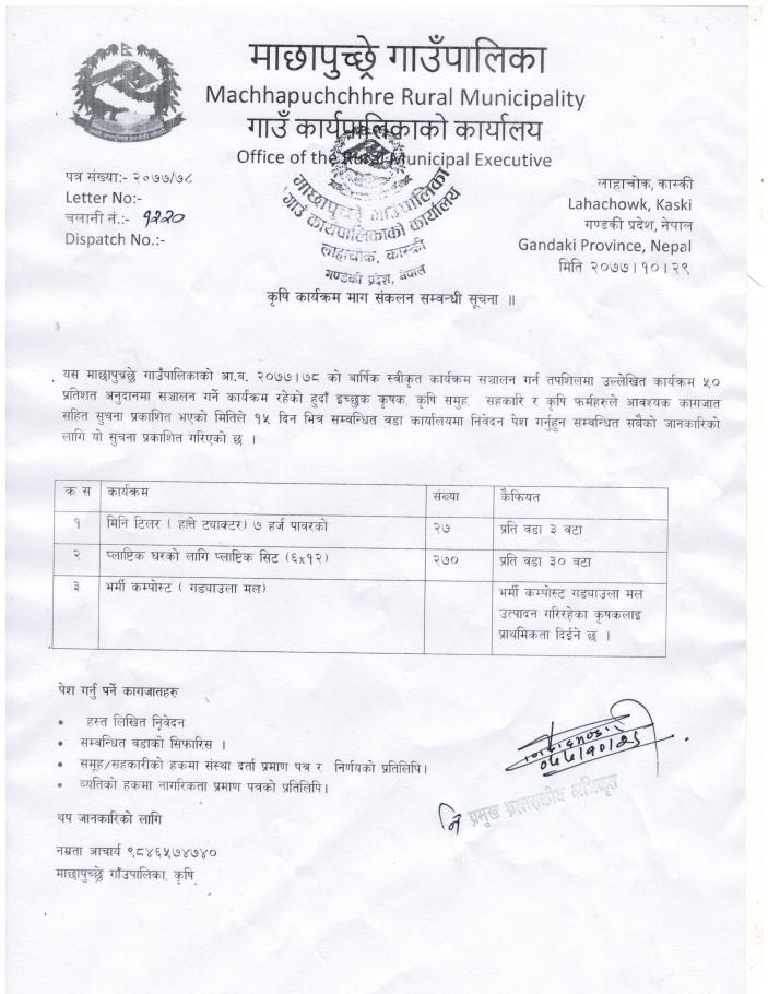 कृषि कार्यक्रमका लागि माग संकलन सम्बन्धी सूचना।