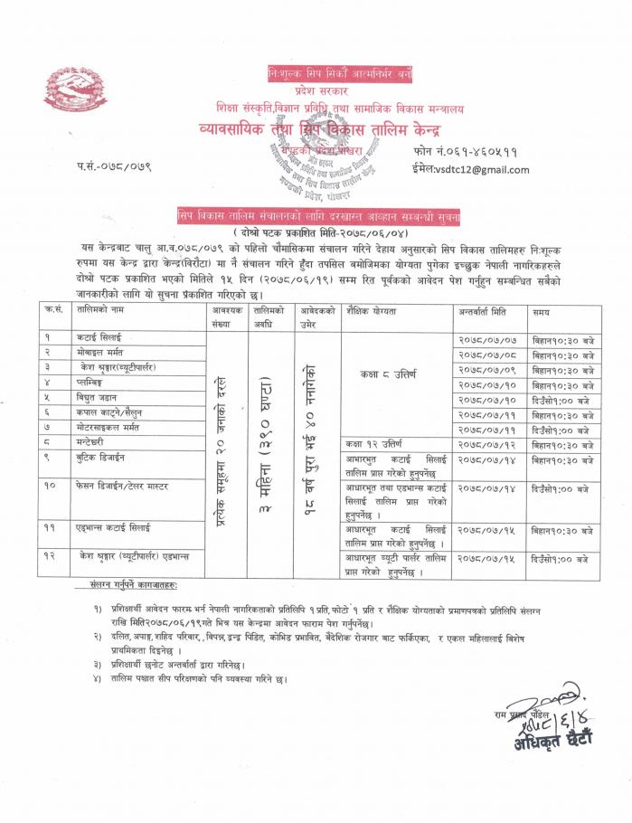 नि:शुल्क सिप विकास तालिम सम्बन्धी दोस्रो पटक प्रकाशित सूचना।
